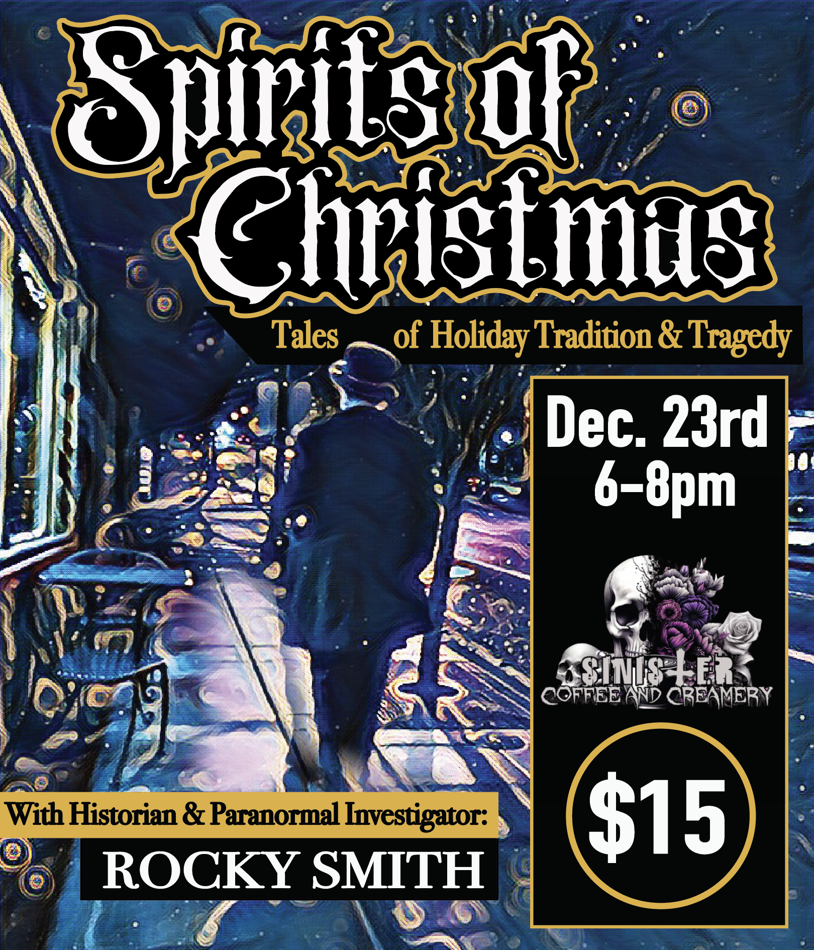 | Join Historian and Paranormal Researcher Rocky Smith as he shares stories of Holiday tradition and tragedy from Oregon's early history. Tickets $15 (Open faced Sinister S'mores included)